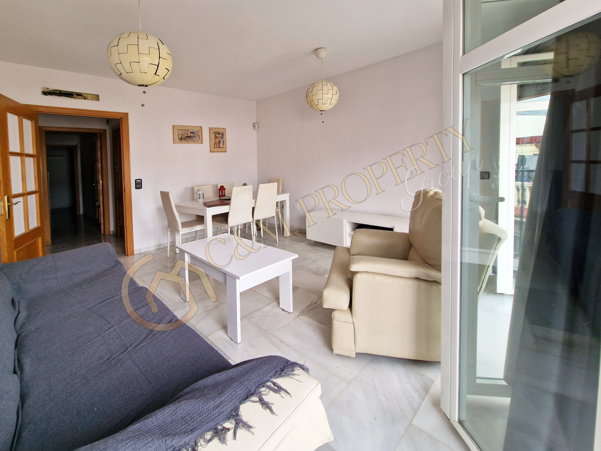 Salón-comedor con dos balcones (¡ventilación cruzada y luz todo el día! )